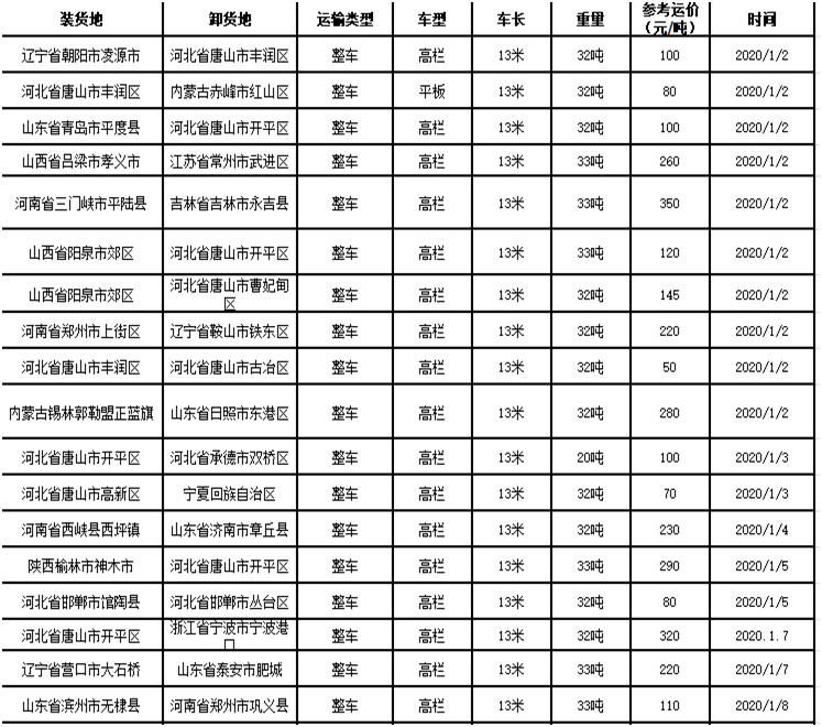 自銀耐聯(lián)平臺物流服務(wù)正式上線以來,目前已得到眾多交易客戶的廣泛關(guān)注和青睞,現(xiàn)陸續(xù)有諸多耐材企業(yè)物流負(fù)責(zé)人通過銀耐聯(lián)平臺物流管理欄目進(jìn)行運(yùn)費(fèi)詢價(jià),并通過平臺實(shí)現(xiàn)了物流交易。以下為部分地區(qū)物流交易參考運(yùn)輸價(jià)格匯總表: