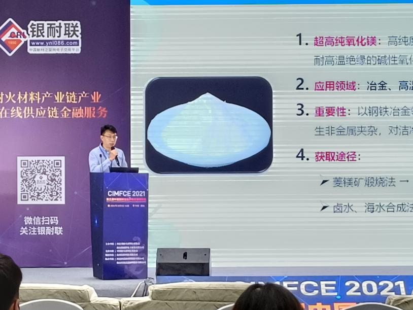 首先,來自唐山海港經濟開發區北京理工大學機械與車輛學院轉化研究中心的董明明教授發表了題為“原電池法超純氫氧化鎂/電力聯產”的演講。“超純氧化鎂”是研究中心聚焦的四大核心技術之一。該技術可通過綠色電化學手段生產氧化鎂含量99%以上,熔點高于2800℃的超高純氧化鎂。董明明教授系統講解了電化學工藝生產高純氧化鎂技術原理。此技術可在冶金、高溫化學工業、航空航天等諸多領域應用,針對鋼鐵冶金領域可促進我國冶金行業轉型升級,促進潔凈鋼質量提升。