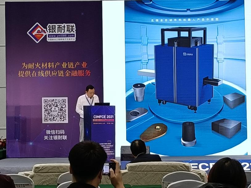 北鈿(天津)科技有限公司市場總監周巖的演講主題為“北鈿科技,助力耐火行業自動化、智能化”。周巖總監對公司發展歷程,產品類型,產品優勢,產品應用流程進行了詳細講解。天津北鈿科技是專業從事耐火行業自動化設備生產的科技型企業,主打產品為全自動智能布料機、自動取磚機、自動檢測系統、自動堆碼系統,具有不蓬料、不偏析、高精度的特點。