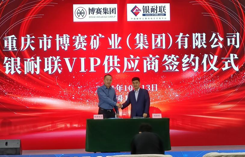 北鈿(天津)科技演講完畢后,重慶市博賽(礦業)集團有限公司與唐山銀耐聯電子商務有限公司的VIP供貨商簽約儀式隆重舉行。重慶博賽集團是最早一批踐行國家號召擁抱工業互聯網實現產品線上交易的優秀供貨商之一,目前在銀耐聯平臺銷售超2萬噸優質棕剛玉,不僅產品質量過硬,完善的售后服務也得到新老客戶的廣泛認可,成為銀耐聯平臺第一批VIP供貨商。博賽集團在工業互聯網領域取得了突出成績,同時與博賽(礦業)的深入合作也證明了銀耐聯交易平臺對重塑耐火材料產業交易模式,推動行業健康發展起到的關鍵性作用。博賽集團賽特剛玉副總經理王振杰,唐山銀耐聯電子商務有限公司副總裁魏雨寶上臺進行了簽約。