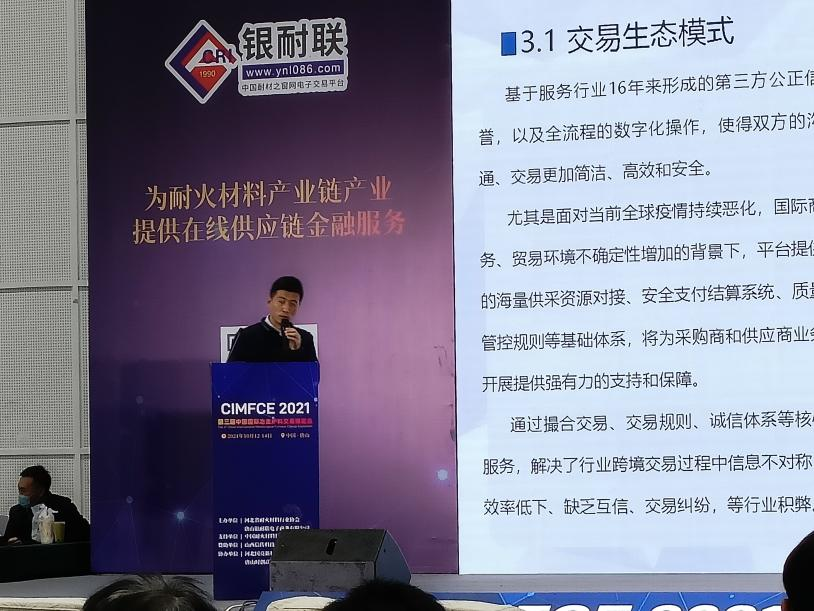 最后,唐山銀耐聯電子商務有限公司國際部大交易總監王陽松分享了2021年8月初正式上線的B2B跨境交易電子商務平臺“Refwin E-Trade”在助力企業出口方面提供的線上服務。